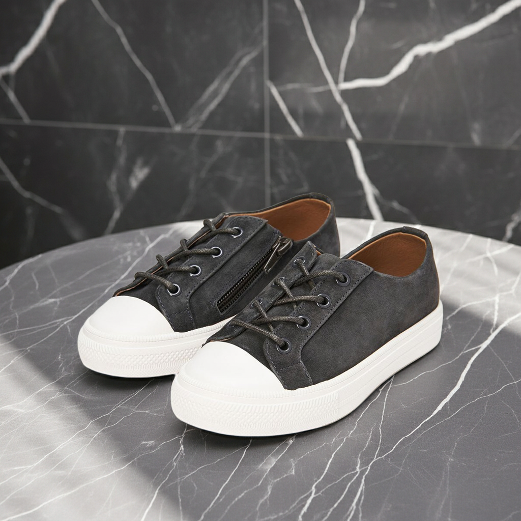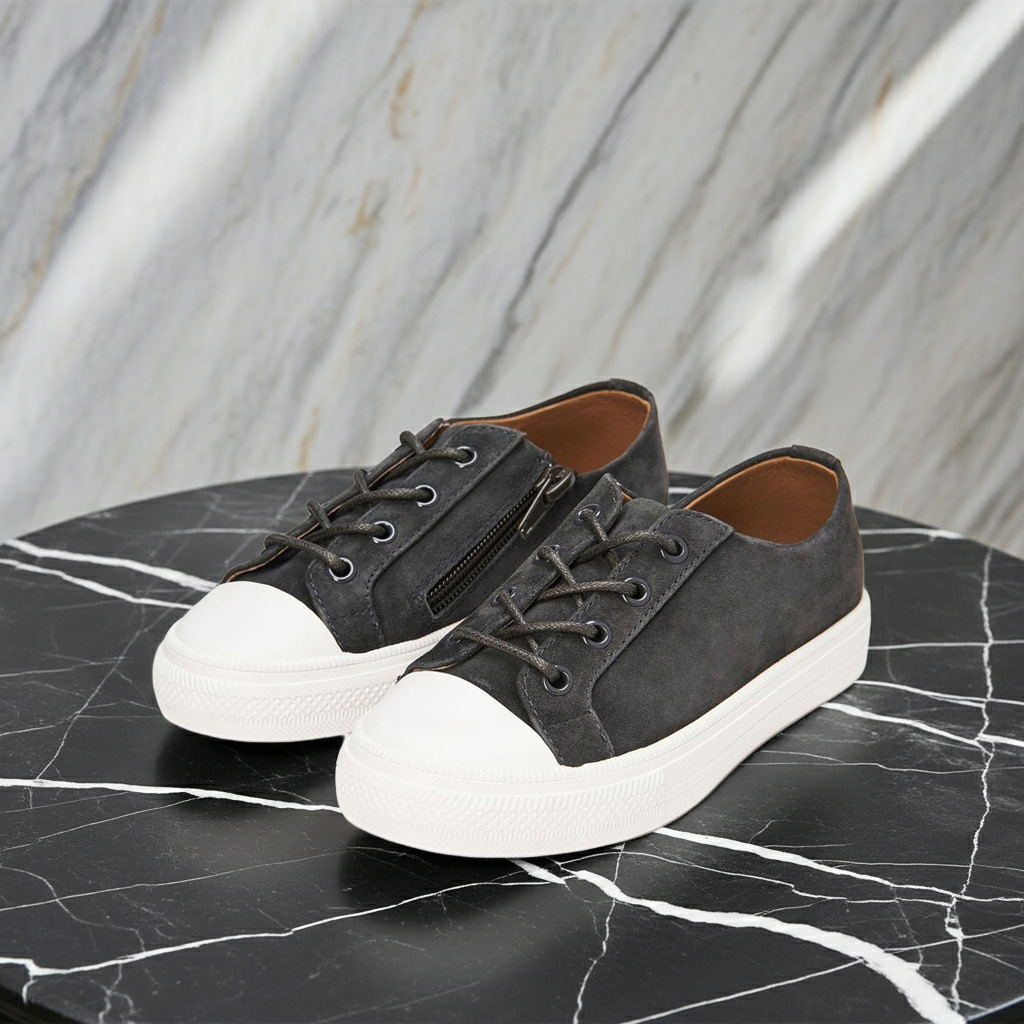 Discover the sleek versatility of the Truftrek Theo Grey Sneakers — a refined choice for everyday wear. Designed with a modern, low-profile silhouette in classic grey, these sneakers are made to pair effortlessly with casual jeans or smart-casual attire. The upper is crafted from high-quality materials for durability and style, while the padded interior and reliable outsole deliver comfort and performance throughout the day. The lace-up closure ensures a secure fit and the minimalist design keeps the look clean and refined.